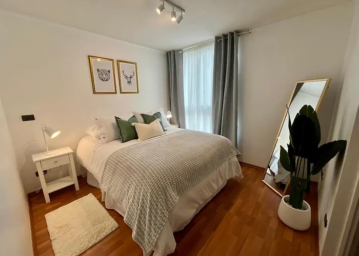 El Apartamento Vivebellavistacl, que incluye una terraza, se encuentra a 5 minutos a pie de la Estación Funicular Pio Nono. Este apartamento de 60 m² ofrece un aparcamiento privado en las instalaciones y comodidades modernas como Wi-Fi.